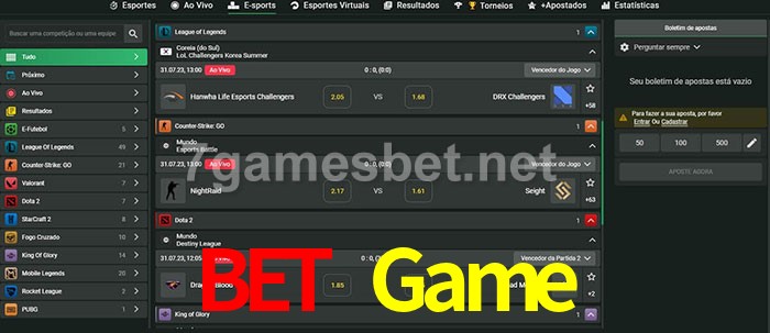 O Bet Game oferece uma grande seleção de opções de apostas em e-sports com probabilidades competitivas